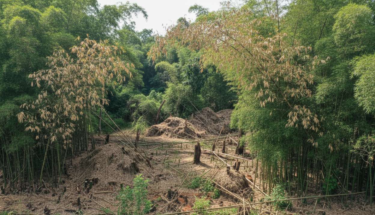最も恐ろしいリスクの一つが土砂災害です。一般的な森林の樹木は地中深くに根を張り、土壌をしっかり固定しています。しかし竹の根は地下50cm程度の浅い層にしか広がらないため、地面を支える力が非常に弱いのです。放置された竹林が広がり、もともとあった樹木が枯れてしまうと大雨が降った際に竹林全体が地面の表層ごと滑り落ちる「表層崩壊」という土砂崩れを引き起こす危険性が高まります。