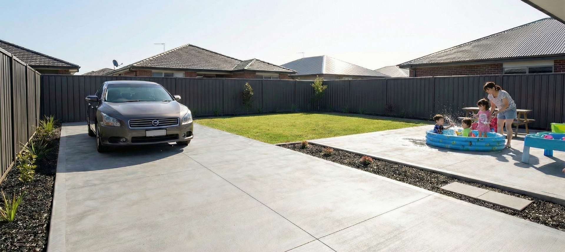 さらに、多目的な利用価値があります。コンクリートで舗装したスペースは、駐車場や駐輪場として最適です。車の重量にも十分に耐えられ、雨の日でも足元がぬかるむことがありません。また、バーベキューコーナーや子どものプール遊び、バスケットボールの練習スペースなど、多目的に活用できるフラットで清潔な空間が生まれます。